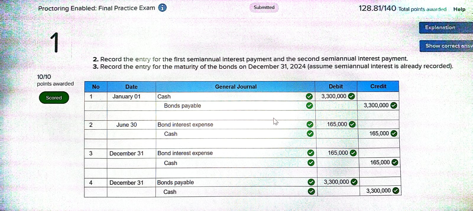 - Record the entry for the first semiannual interest payment and the second semiannual interest payment.